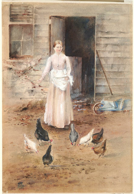 Frances Hodgkins Girl feeding poultry. Watercolour. Collection of Christchurch Art Gallery Te Puna o Waiwhetū, purchased 1958