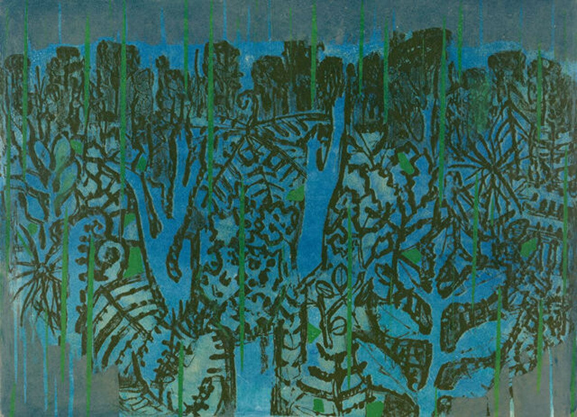 Juliet Peter Rain Forest II 1970 Lithograph. Collection of Christchurch Art Gallery Te Puna o Waiwhetū, purchased 1973