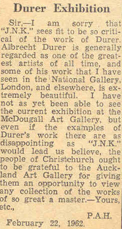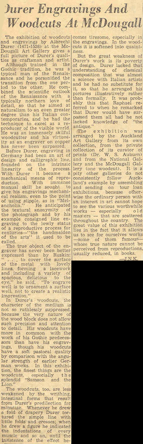 This exhibition of 40 engravings and woodcuts was prepared by the National Art Gallery with all the prints coming from New Zealand collections.