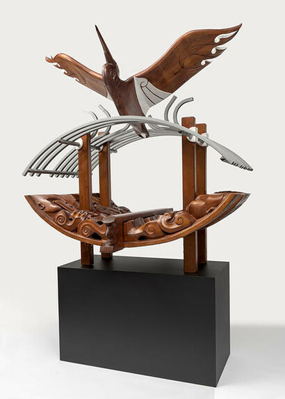 The long and distinguished practice of Aotearoa New Zealand artist Fred Graham (Ngāti Korokī Kahukura, Tainui) is celebrated in this selection of significant sculptures and relief works from 1965 to 2013. They demonstrate the development of Graham’s distinctive visual language, which combined Māori and European artmaking traditions. Using wood, stone and stainless steel, Graham wove together close observations of the natural world – birds in flight and the flow of water – with evocative references to the imagery and narratives of te ao Māori. He became a Companion of the New Zealand Order of Merit in 2024 for his services to Māori art.