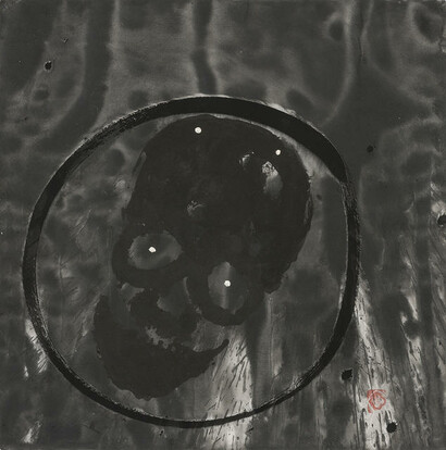 for Gibbon Sengai - my teacher - the oyster holds a moonbeam in its mouth. the rabbit cherishes a child in its womb - 10.29.79 - 18