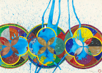 Max Gimblett Ocean Wheel 2010. Pencil, ink, metallic ink, acrylic polymer, oil size, aluminium leaf / Arches 300 lb Watercolour Paper. France. The Max Gimblett and Barbara Kirshenblatt-Gimblett Gift, 2011