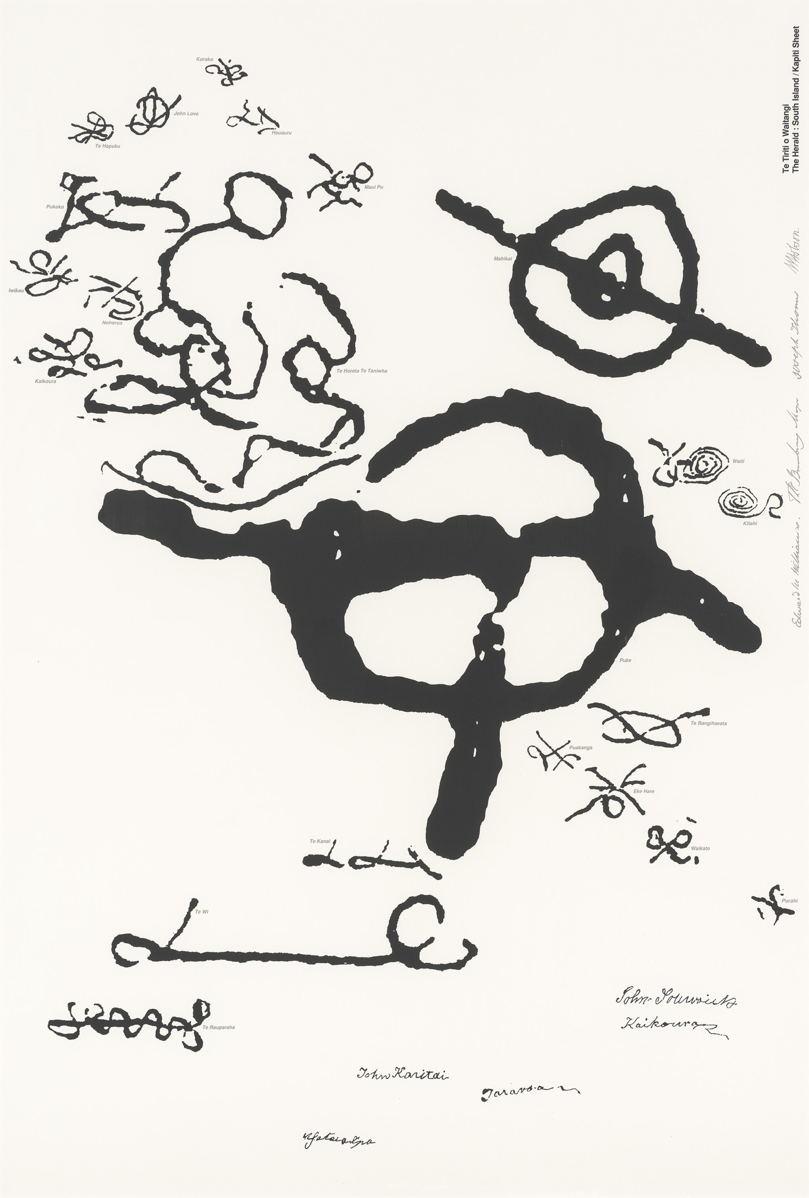An exhibition of Max Hailstone's most controversial and important series, using the signatures of the rangatira (Māori chiefs) who signed New Zealand's Treaty of Waitangi in 1840