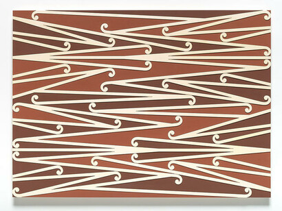 Echoing the overlapping forms of the Māori art of tukutuku, this vividly coloured wall painting by Kelcy Taratoa weaves together a story of exploration and connection. Spanning 36 metres across Christchurch Art Gallery Te Puna o Waiwhetū’s outer east wall, best viewed from Gloucester Street, it's about everything that binds us together, from the ocean to the stars. This painting, and another related wall painting inside, were commissioned to accompany the major exhibition Te Wheke: Pathways Across Oceania. Taratoa worked with the support of mana whenua to ground the work in local narratives that relate to discovery and whakapapa. Within the painting’s abstract composition are islands, a maunga (mountain) and kāhui whetū (cluster of stars). They relate to early voyages of discovery across the Pacific and how whakapapa (genealogy) can unite people in a common kaupapa, or purpose.