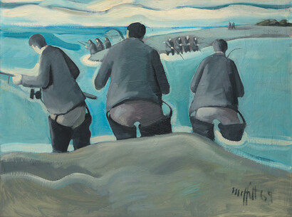 Austen A. Deans Camp in the Kowai 1952. Oil on canvas. Collection of Christchurch Art Gallery Te Puna o Waiwhetu, presented by Christchurch City Council in memory of former Town Clerk Mr H.S. Feast OBE, 1961