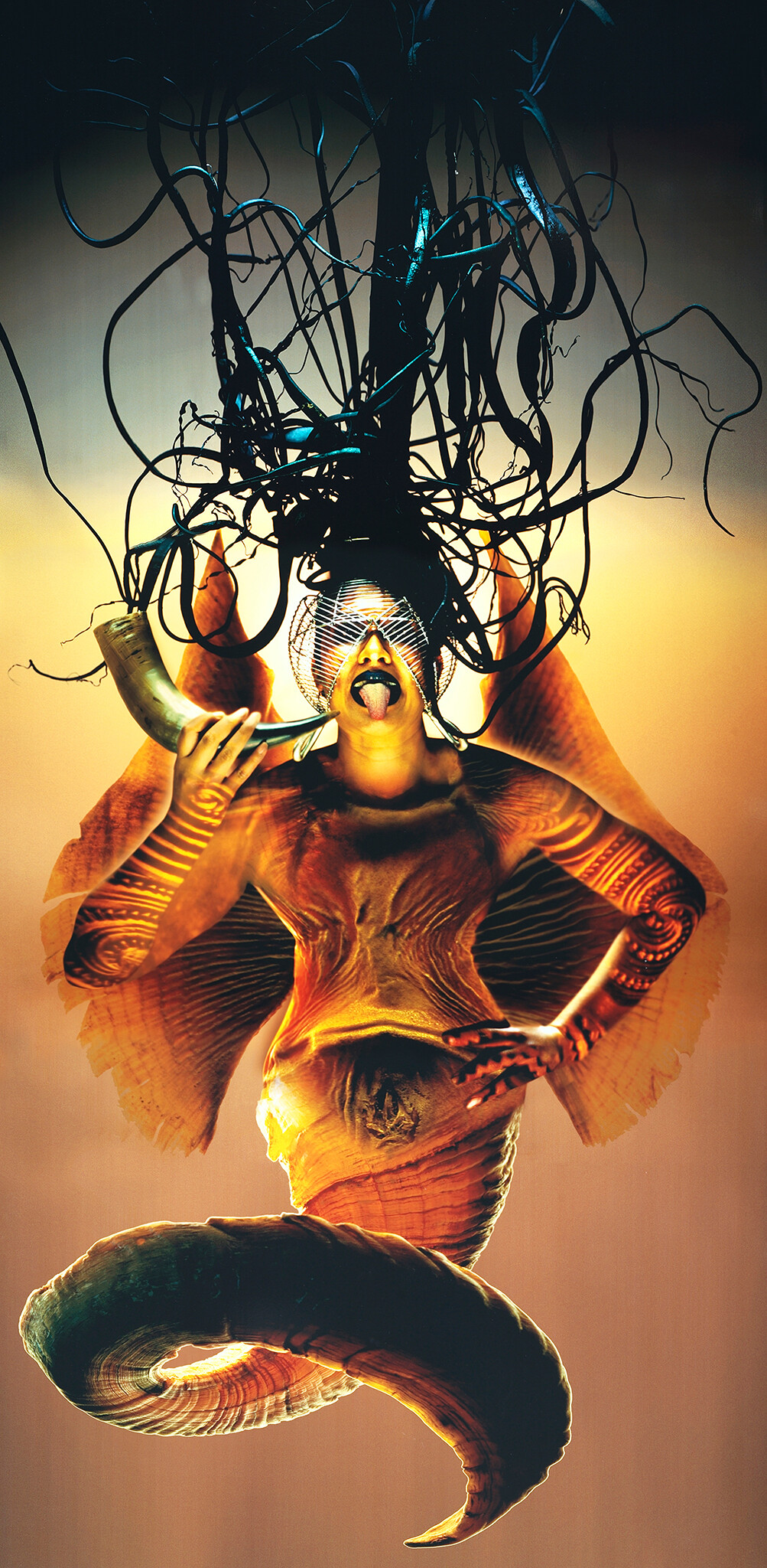 Real human hands cut into the taniwha’s tail and eat greedily. Turakipo’s sandaled feet walk to his beach. His people lie dead, poisoned by the flesh of the taniwha.